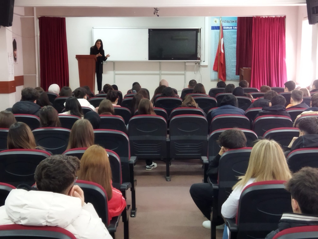 Trabzon'un deneyimli avukatlarından sayın Duygu Keleş, 8 Mart Dünya Emekçi Kadınlar Günü sebebiyle öğrencilerimize 'Toplumsal Cinsiyet Eşitliği ve Kadına karşı şiddet' konularıyla ilgili bir sunum yaptı. Katkılarından dolayı kendisine çok teşekkür ederiz.